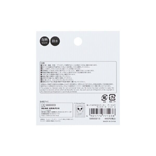 ディズニー ピクサー モンスターズインク 貼ってはがせるステッカー(A) 文具 Disney