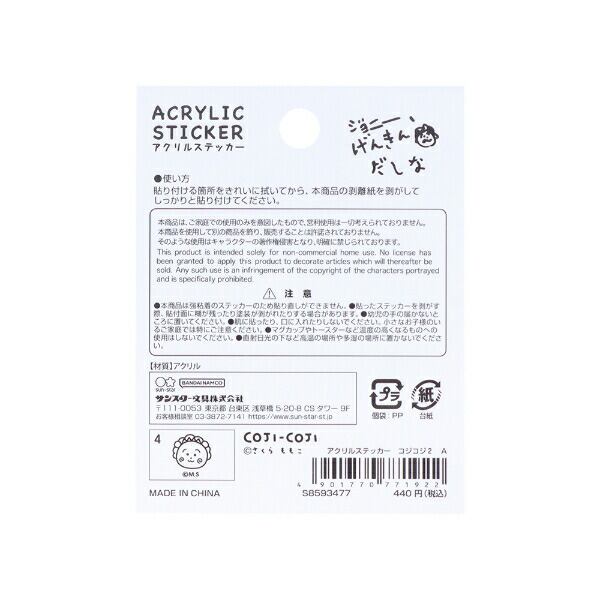 コジコジ アクリルステッカー(A) スマホ COJI-COJI
