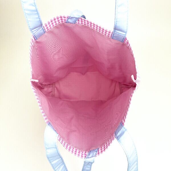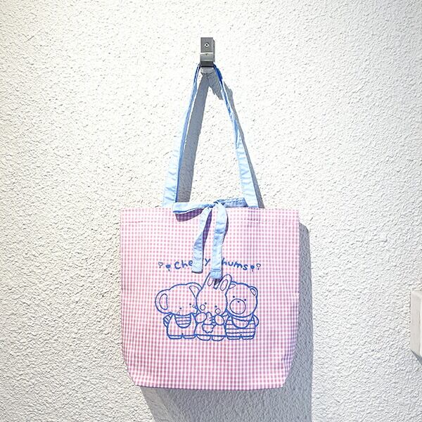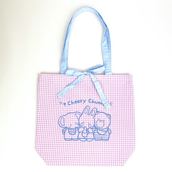 チアリーチャムのトートバッグです。ギンガムチェックがかわいい♪A4サイズが入るマチ付きなので収納力抜群!リボンを結べばバッグの口を閉じることもできるので覗き見防止に。普段使いはもちろん、推しカラーやお好きなキャラクターを選んで推し活も◎世代を超えて愛されるあのキャラクターたちに出会えます☆