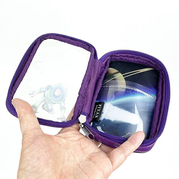 PIXARの代表的な作品をピックアップしたシリーズ。表面がクリア素材になっていて、ポーチの内側のアートと合わさった時にデザインが完成するこだわりのポーチです。小物の整理にも便利なポケット付き◎
