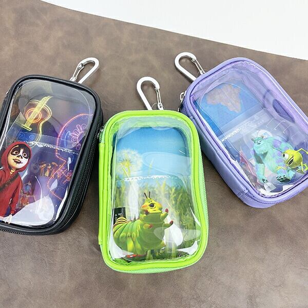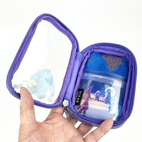 PIXARの代表的な作品をピックアップしたシリーズ。表面がクリア素材になっていて、ポーチの内側のアートと合わさった時にデザインが完成するこだわりのポーチです。小物の整理にも便利なポケット付き◎