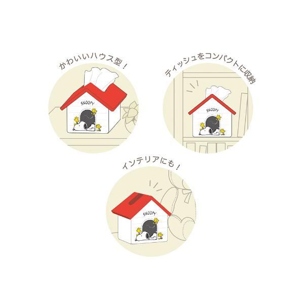 かわいいスヌーピーのハウス型ティッシュケースです♪ティッシュをコンパクトに収納可能◎インテリアとして飾るのもいいですね☆彡裏面のデザインもかわいい♪【収納可能ティッシュサイズ:縦4.5cm以下×幅21.5cm以下使用可】