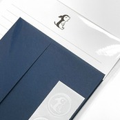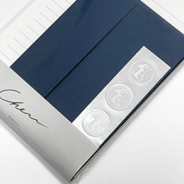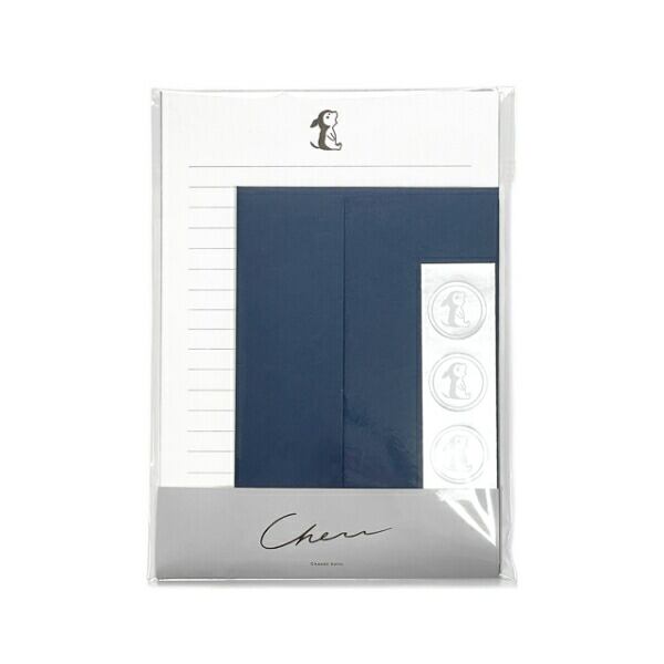 チェスくんのワンポイントがシンプルでおしゃれなレターセット。深い青をアクセントにしたスタンダードシリーズは、シンプルで落ち着いた大人向けのデザインです。チェスくんと一緒に、手書きの文字で真っ直ぐな想いを届けてみませんか。2023年春制作。便箋:8枚 封筒:4枚 シール:4枚