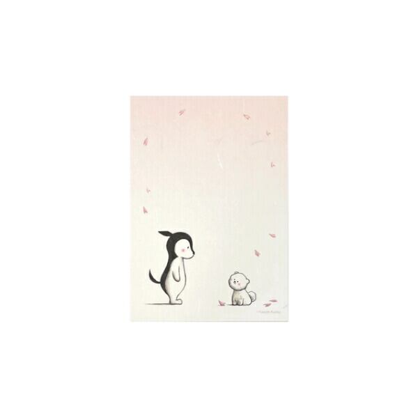 “出会い”をテーマにしたチェスくんとコジローのミニメッセージカード7枚セット。春は出会いの季節。桜の花びらに誘われて、チェスくんがコジローと出会う瞬間を切り取った作品です。桜のイメージに合うように和風な高級紙を使用しています。このカードにメッセージを書いて、大切な人に想いを伝えてみてください。2024年春制作。