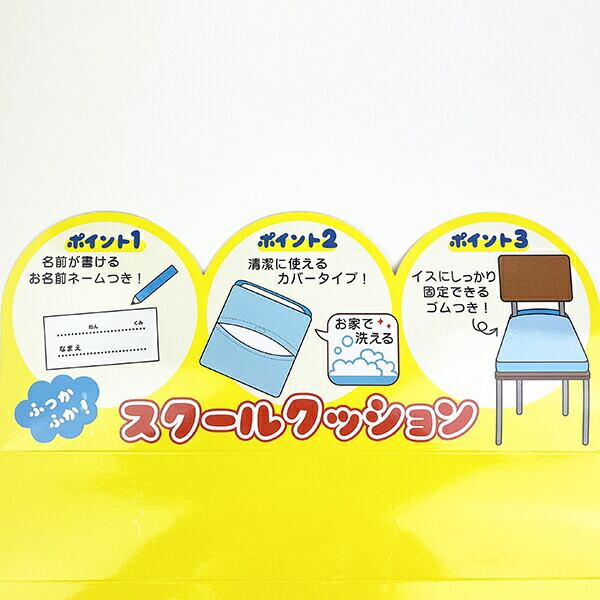 学校でもお家でも、大活躍のシートクッション。ふかふかなので長時間座っていてもお尻が痛くなりません◎ゴム付きなので椅子にしっかり装着出来てズレにくいのもポイントです♪