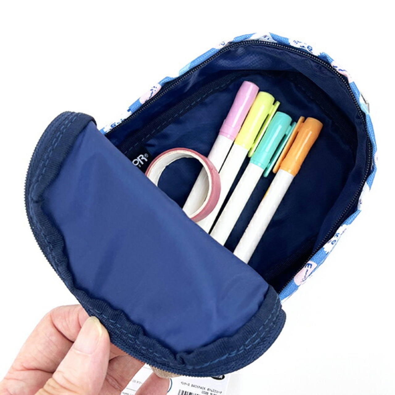 かわちいちいかわのペンケースBACKPACKです☆ボトムにスウェード生地を使用したクラシックテイストのリュックタイプのペンケース♪カナビラ付きで持ち運びに便利◎