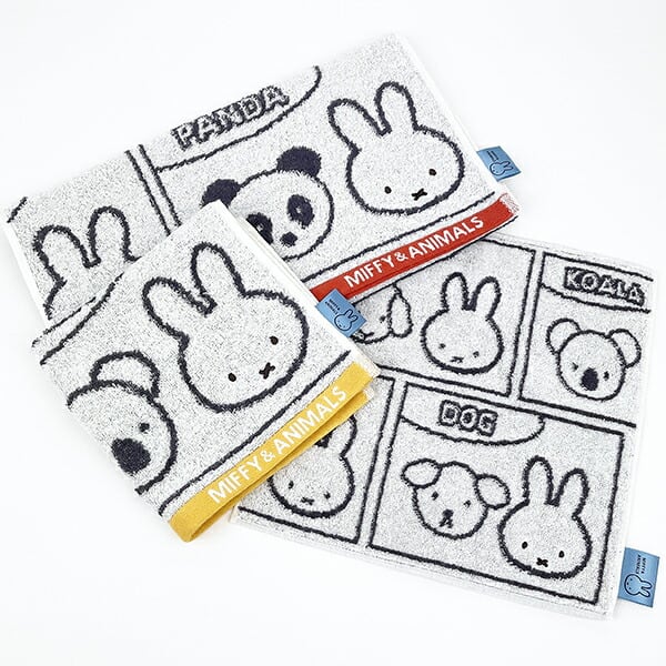 ミッフィーの世界に登場する、動物たちをモチーフにした「MIFFY & ANIMALS」シリーズ♪コアラやパンダなど、普段なかなか見かけないレアキャラも…このシリーズでは、さまざまな種類の動物たちが登場するようにデザインされています♪大人からお子様まで幅広くお使いいただけるかわいいジャガードタオル! 吸水性ばっちりで手触りもよく気持ちいい。ギフトや普段使いに最適◎