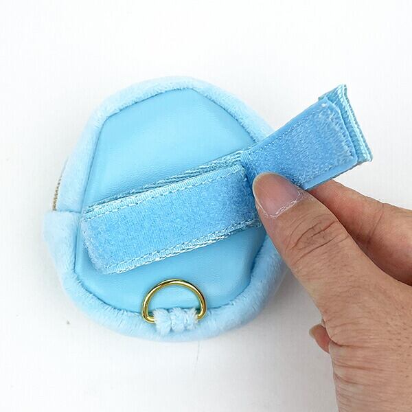マジックテープのベルト付きなので、バッグやショルダー、シートベルトなど好きなところに付けられる!下にキーホルダーを付けられる丸環つき!