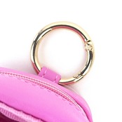 ドラえもんのカラビナ付きミニポーチ。カパッと開き、中には仕切りも付いていて使いやすさも◎丸いカラビナもポイントです♪