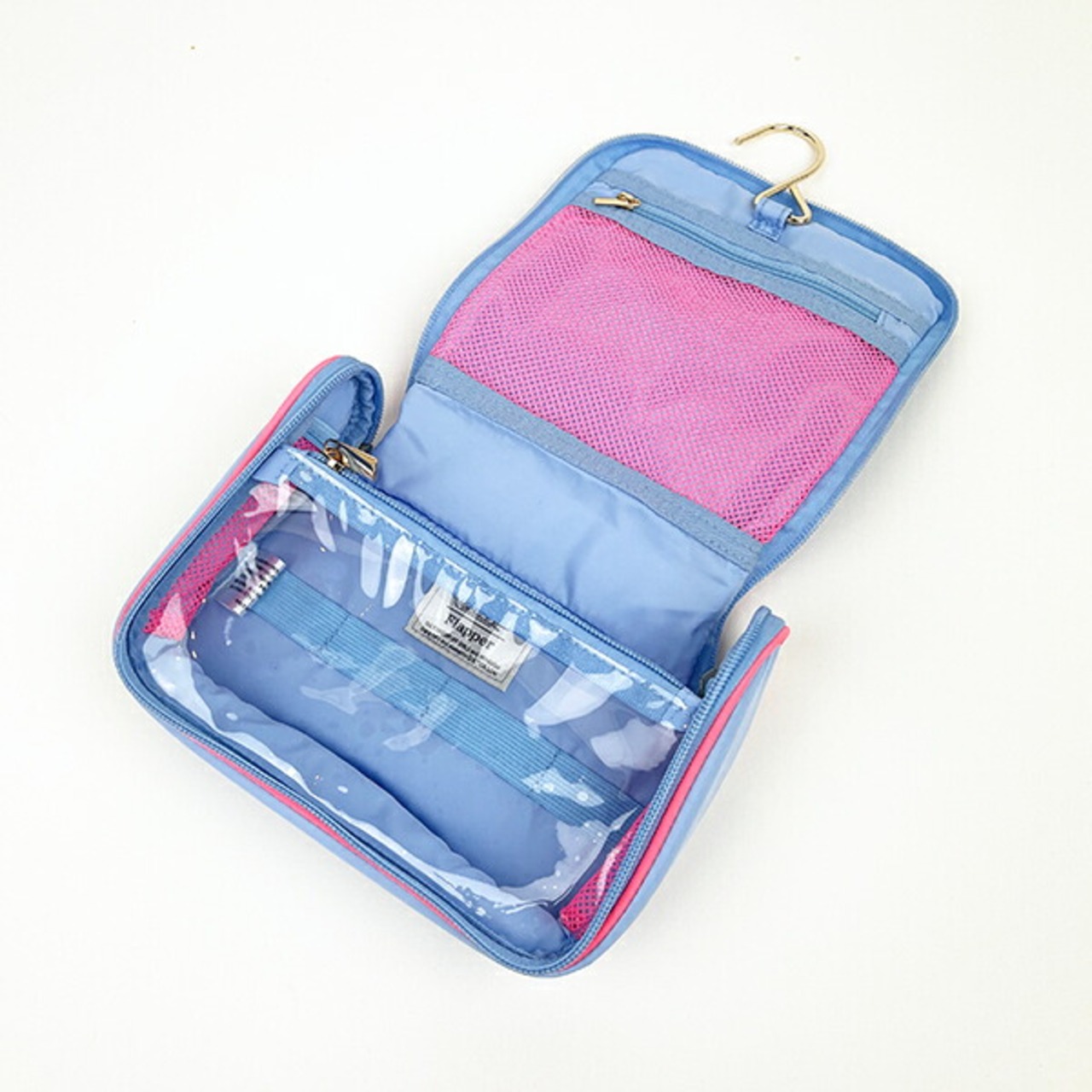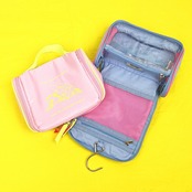 パステルカラーの本体に蛍光カラーでイラストがカワイイ♪フックでかけられるタイプなので、アメニティなどを入れて家の洗面所ではもちろん、旅行先やジムでも大活躍です!
