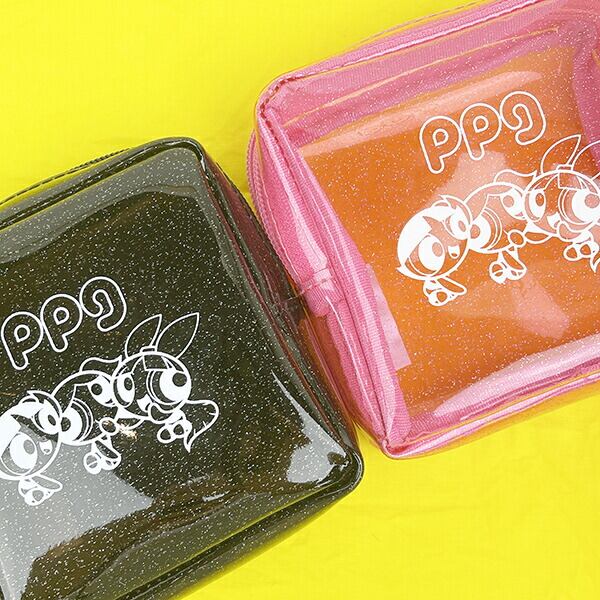 パワーパフガールズ PVCスクエアポーチ ブラック 小物入れ コスメ ポーチ