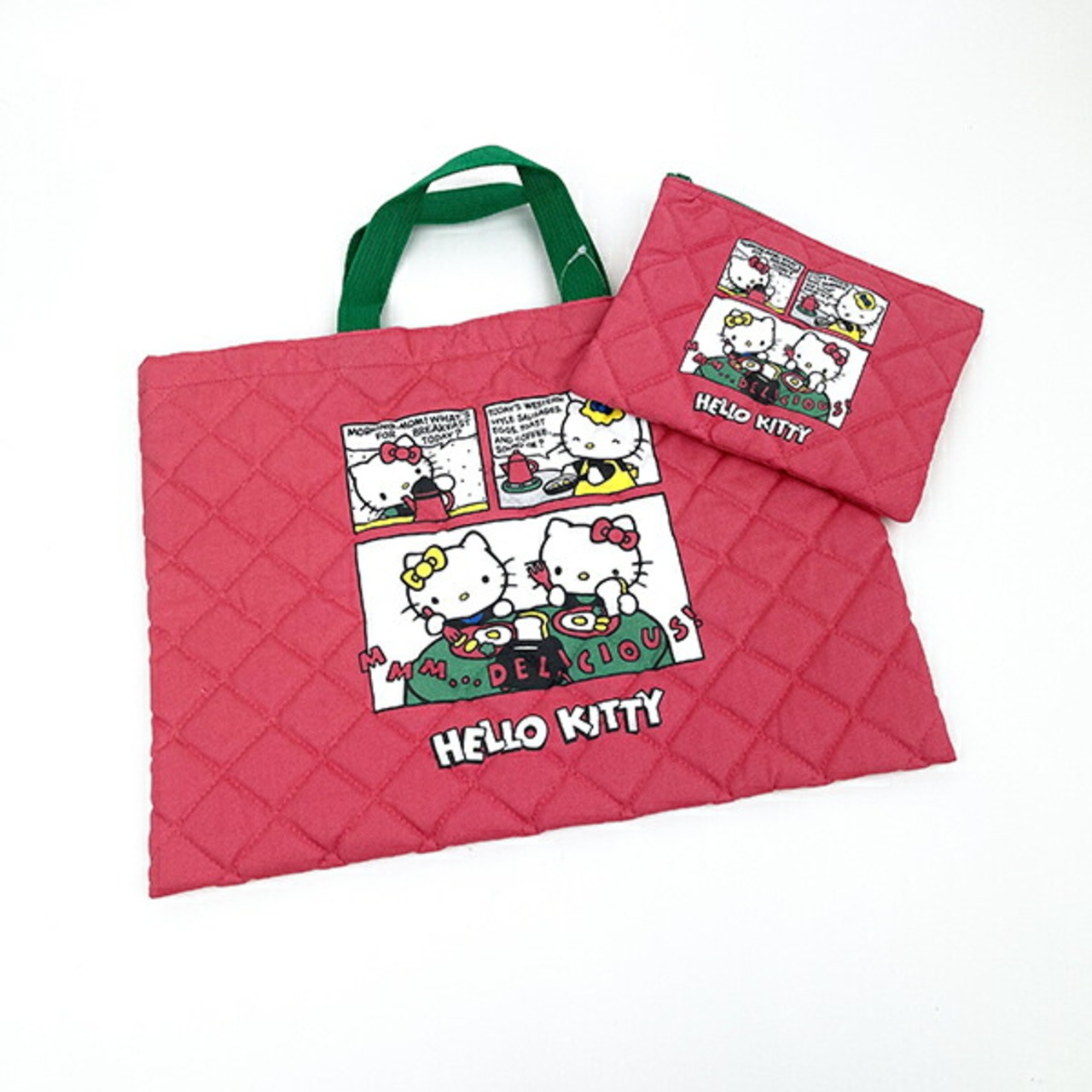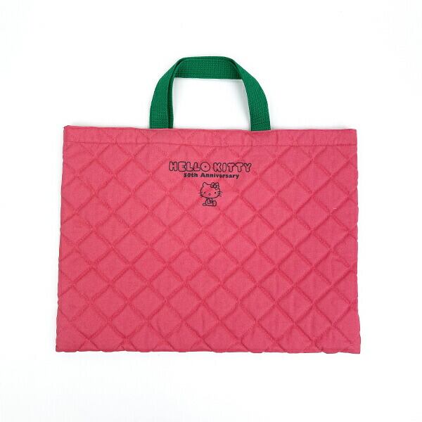 50周年を記念したハローキティのキルティングバッグです♪A4サイズの書類やノートを収納可能◎小学生のお子様の手提げカバンにもお使いいただけます♪