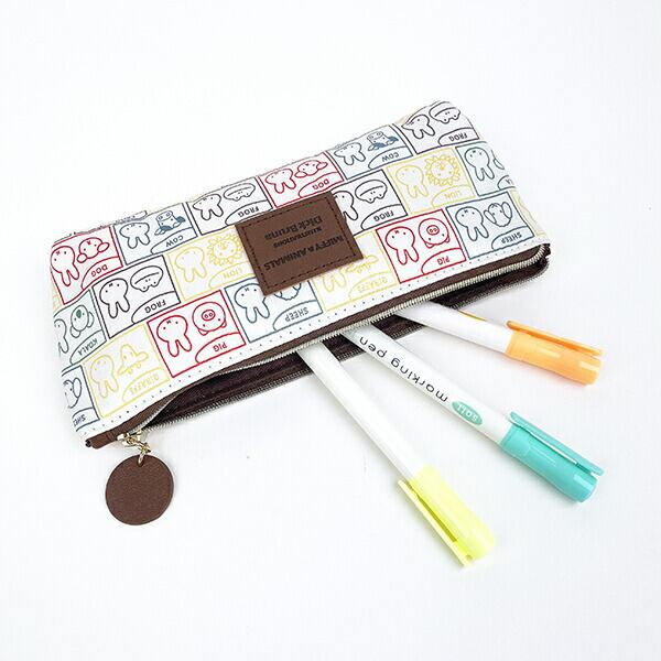 ミッフィーの世界に登場する、動物たちをモチーフにした「MIFFY & ANIMALS」シリーズ♪コアラやパンダなど、普段なかなか見かけないレアキャラも…このシリーズでは、さまざまな種類の動物たちが登場するようにデザインされています♪動物が型押しされた引き手がかわいいペンケースです!ワッペンはレピア織り、引き手・ウラ面ロゴはPU可変合皮生地に型押し。