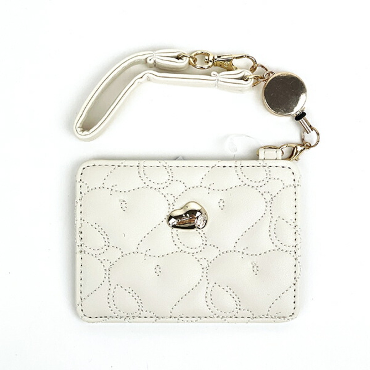 合皮のキルティングにゴールドのワンポイントがレディな印象♪リール付きなのでバッグに付けたまま使えて便利!