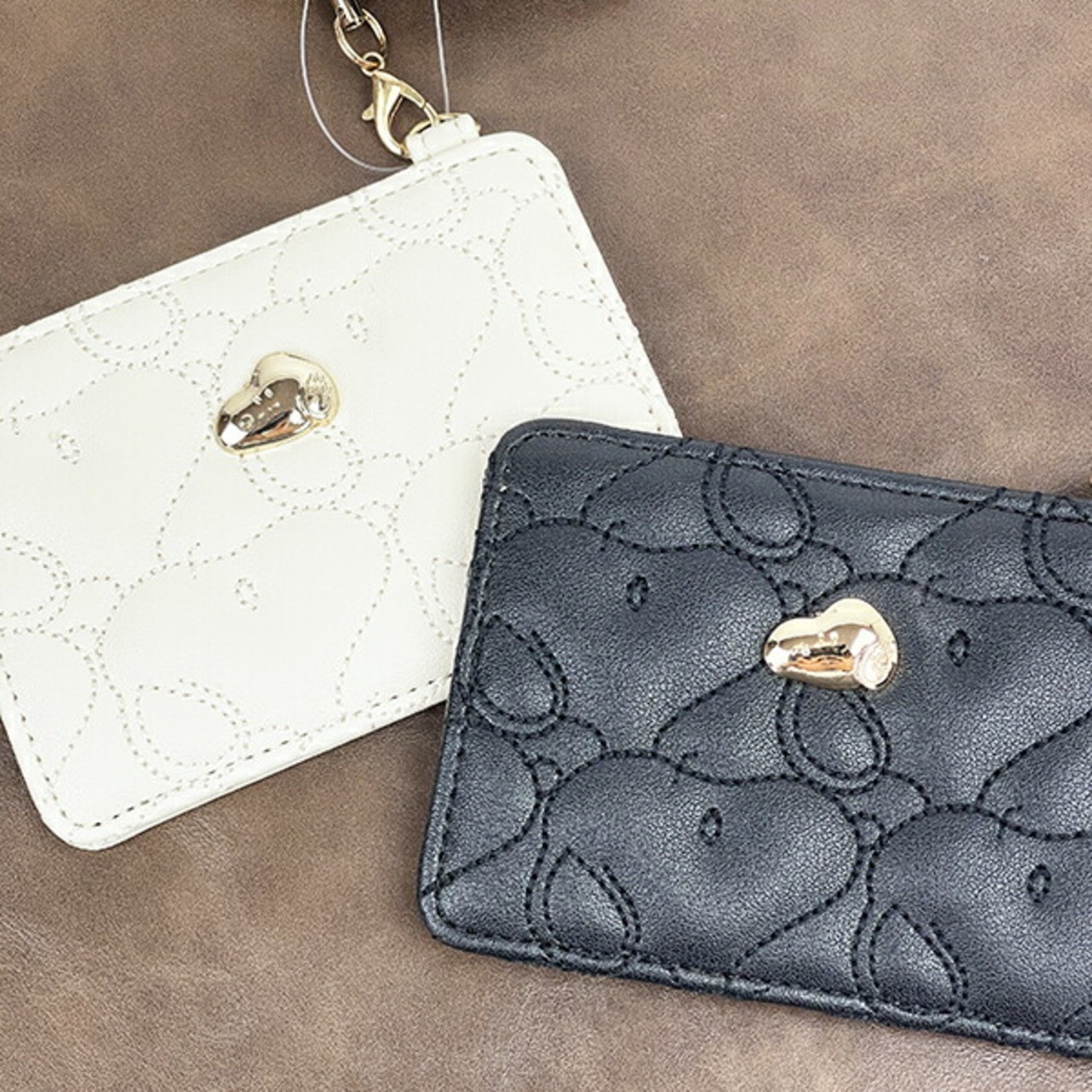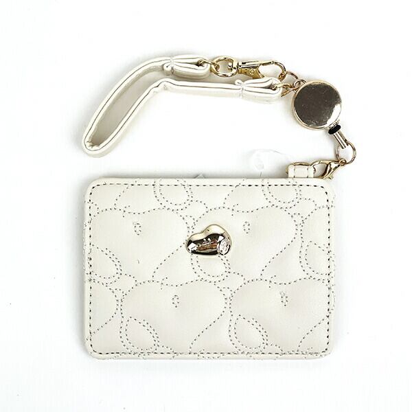 スヌーピー SNOOPY キルティング パスケース ホワイト リール付き 定期入れ ICカードケース