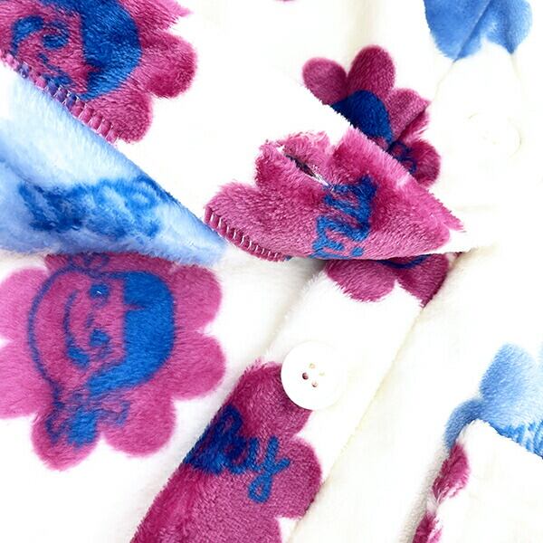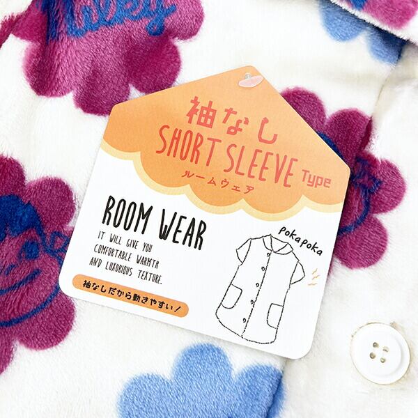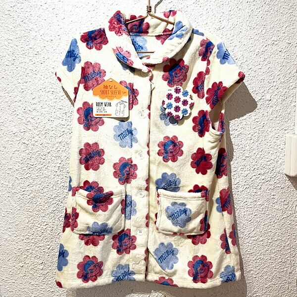 肌寒い日にパッと着れてもこもこであったかいペコちゃんのルームウェアです♪袖なしだから動きやすくポケット付き◎肌触りもよくとてもあたたかくなるアイテムです。【サイズ:約75cm丈】