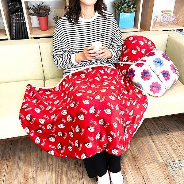 ペコちゃん ペコとポコ ボア付ブランケット ミルキーアイテム (レッド)