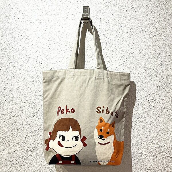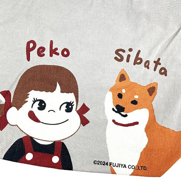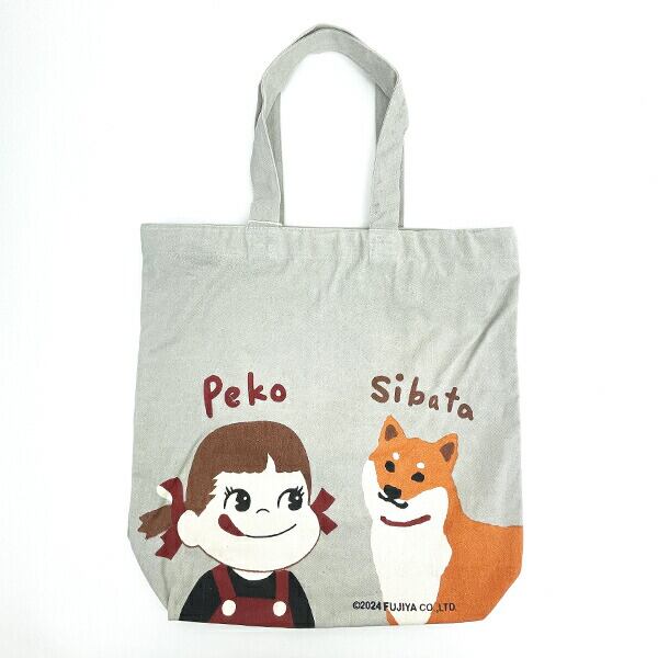 ペコちゃん ペコとしばた ファスナー付A4トートバッグ (グレー)