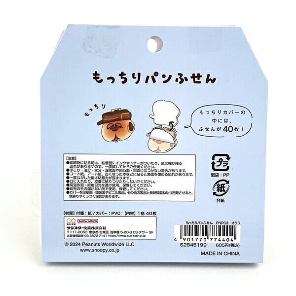 スヌーピーのもっちりパンふせんです。もっちりカバーの中にはふせんが40枚!学校やオフィスにもおすすめです☆
