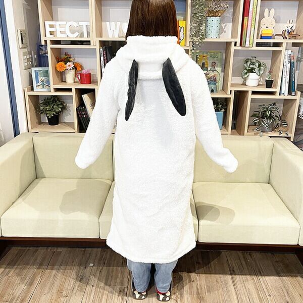 寒い時にサッと着れるもこもこな着る毛布です♪スヌーピーの耳付きで可愛い☆彡おうち時間を暖かくお過ごしいただけます♪ポケット付きで、ちょっとしたものを入れられるのも便利◎【サイズ】肩幅:48cm、着丈:107cm、裾幅:60cm