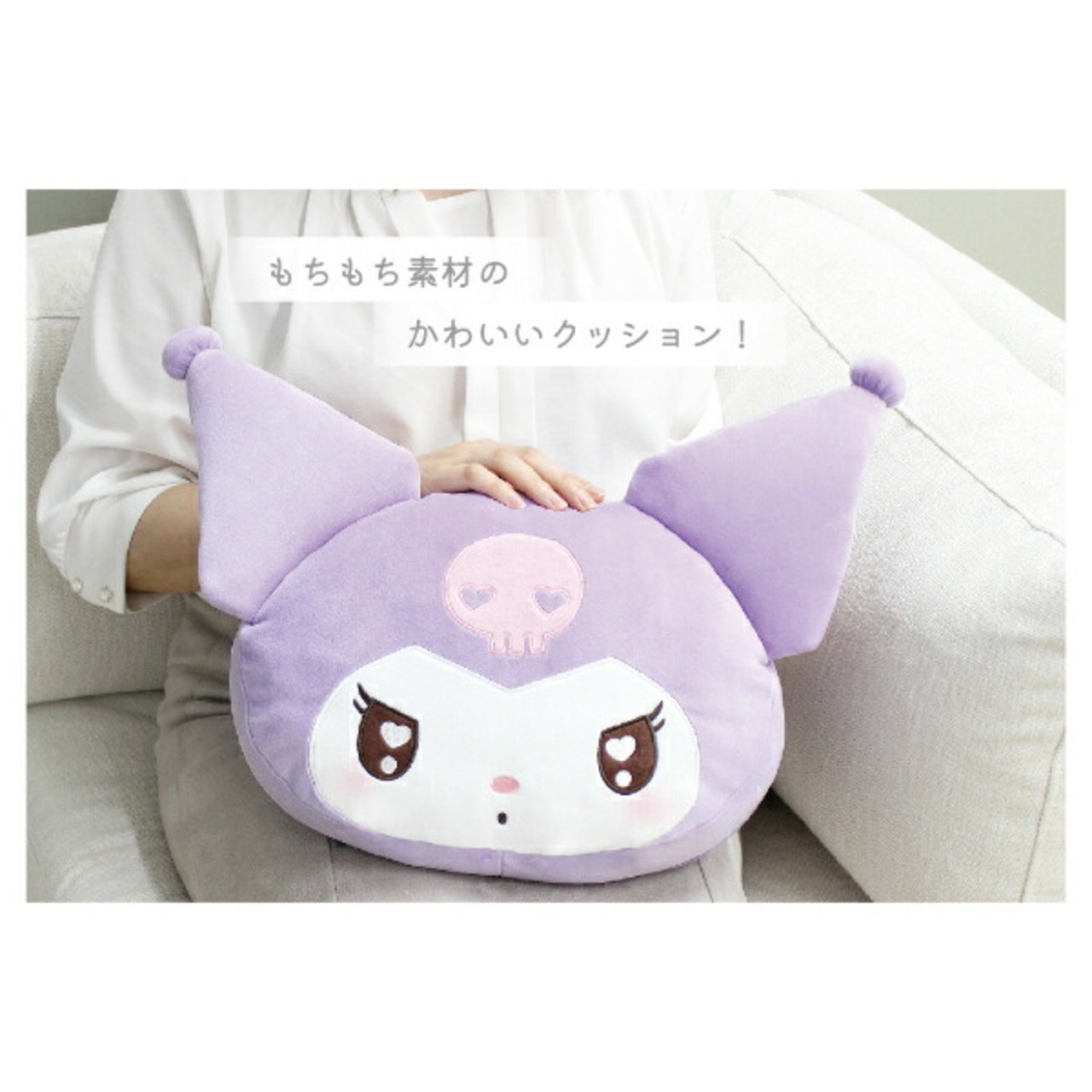 クロミのもっちりフェイスクッションです。うるうるおめめがキュート♪もちもち触感で抱き心地が◎リラックスのお供にぴったりです☆