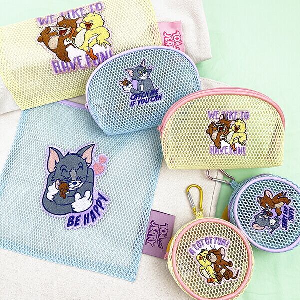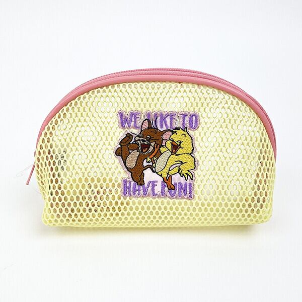 トムとジェリーのメッシュラウンドポーチです。メッシュ生地にかわいい刺繍がポイント♪カラーも最高にかわいい〜☆