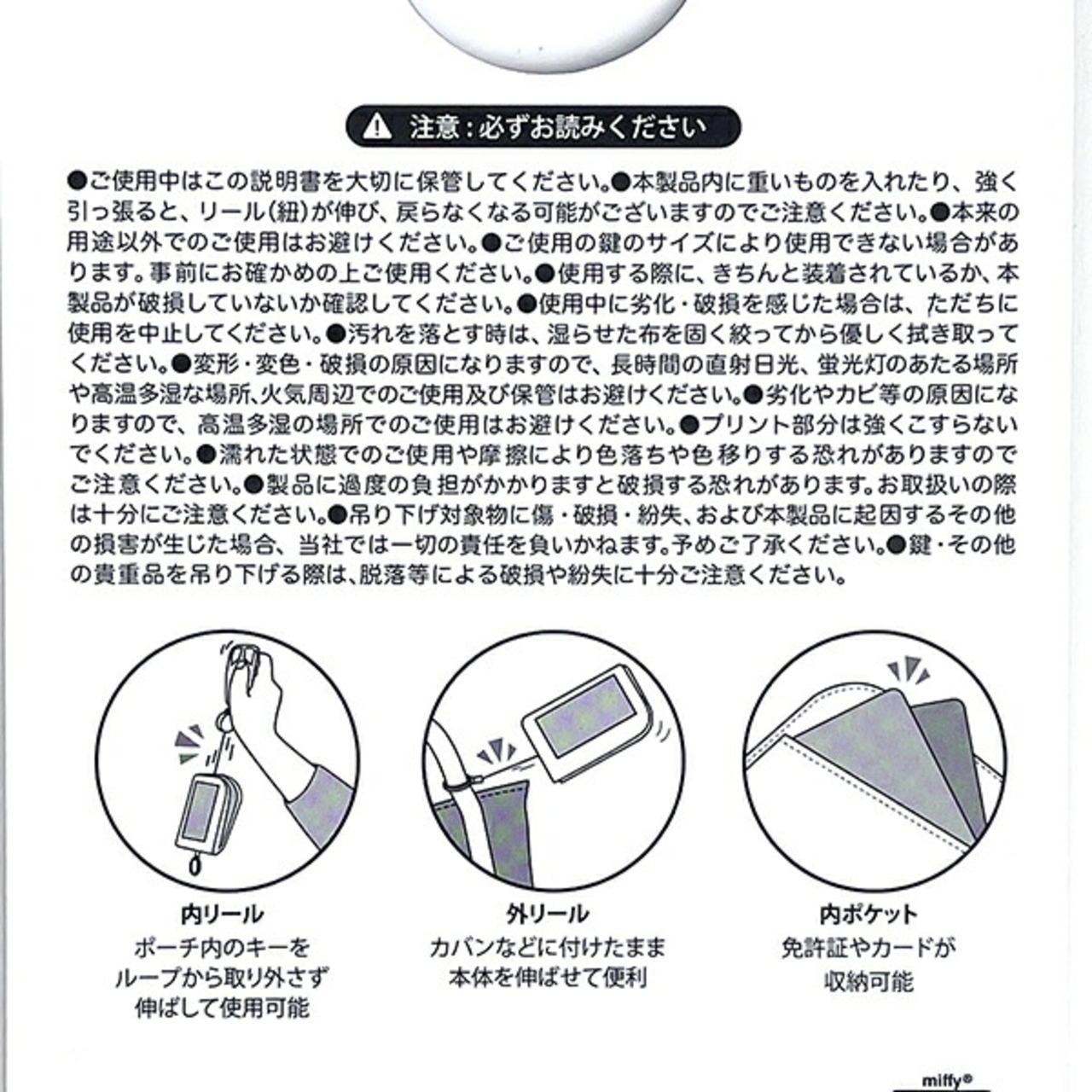 ミッフィー miffy リール付きスマートキーポーチ ブラック キーケース 定期入れ 通勤通学