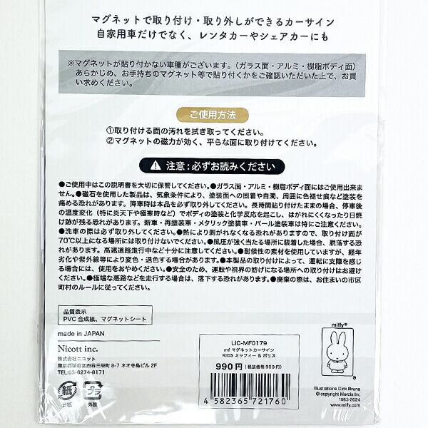 ミッフィー miffy マグネットカーサイン キッズ ミッフィー&ボリス カー用品 ドライブ