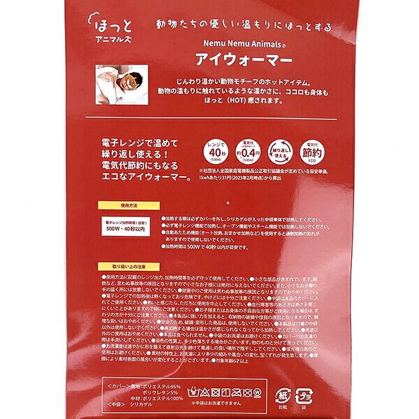 じんわり温かい動物モチーフのホットアイテム♪リラックマ効果やデスクワークなどで疲れた目を癒してくれます。電子レンジで温めて(40秒)繰り返し使えて電気代節約にもなるエコなアイウォーマーです。※素材:【カバー:側地/ポリエステル95%、ポリウレタン5%、中材/ポリエステル100%、中袋:シリカゲル】