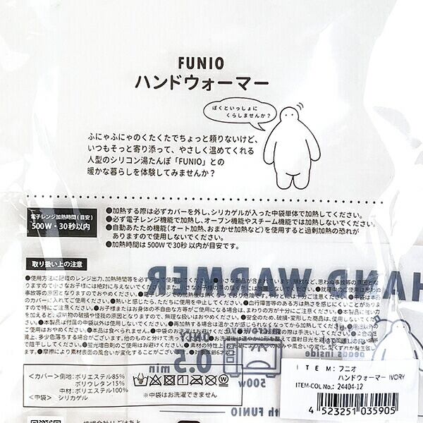 ふにゃふにゃのくたくたでちょっと頼りないけど、いつもそっと寄り添って、やさしく温めてくれる人型のハンドウォーマーです。「FUNIO」との暖かな暮らしを体験してみませんか?電子レンジで温めるだけ!繰り返し使えてエコ☆