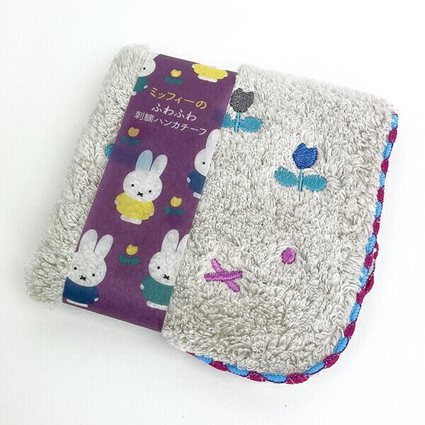 ミッフィー miffy ふわふわ刺繍ハンカチーフ グレー タオルハンカチ ハンドタオル3