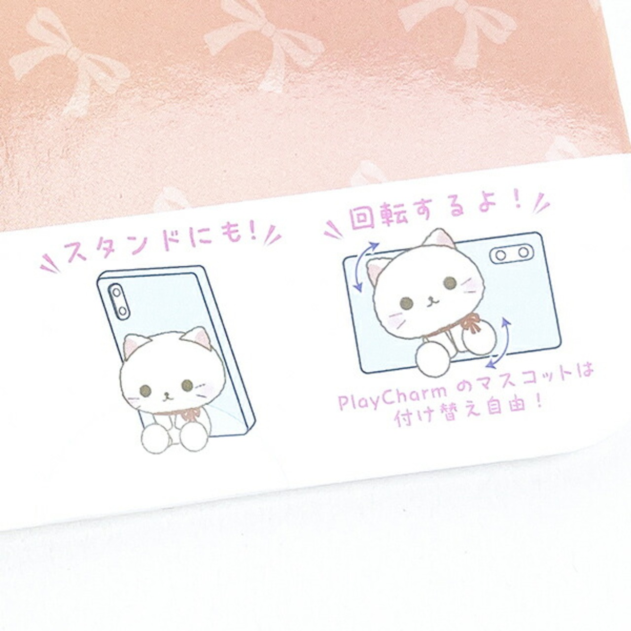 スマホケースに取り付けられるサンリオのPlayCharmリボンです♪動画など見るときにスタンド代わりとしても!横にする時に本体を回転させることもできますよ♪マスコットとしてカバンなどにも付けられますよ♪※ボールチェーンはついておりません※推し活にも使えるのでお好きなキャラクターを持ってエンジョイしませんか♪