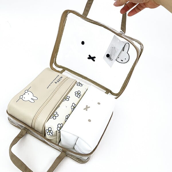 ミッフィー miffy 長方形 トラベルポーチセット (ベージュ) フェイス柄