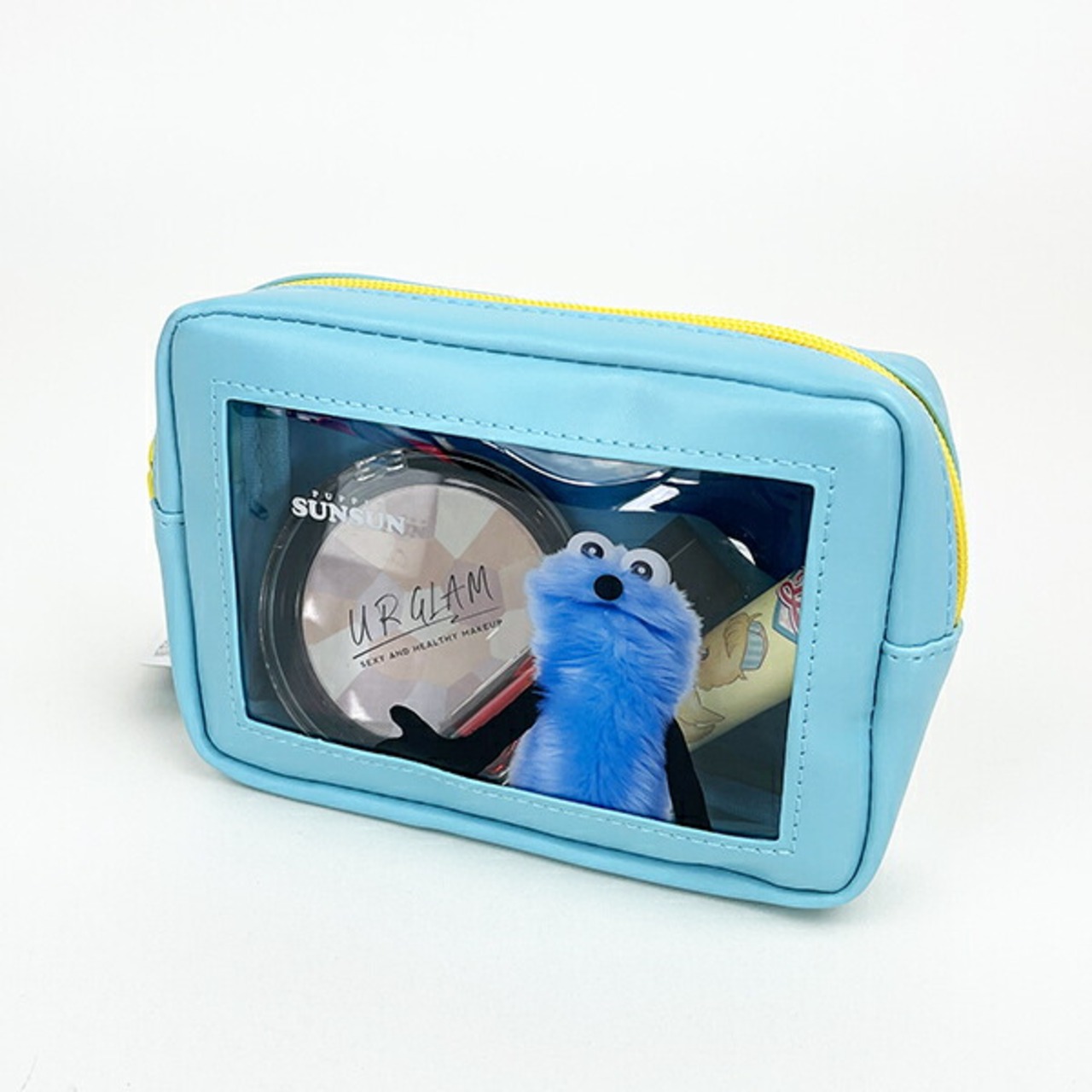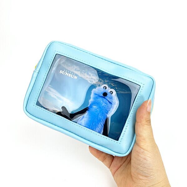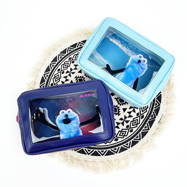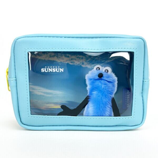 パペットスンスンの可愛いスクエアポーチです♪手前のスンスンと内側の背景に奥行きがあるレイヤー仕様のポーチです♪中身が見えるポーチなので化粧や小物入れにもおすすめです☆彡