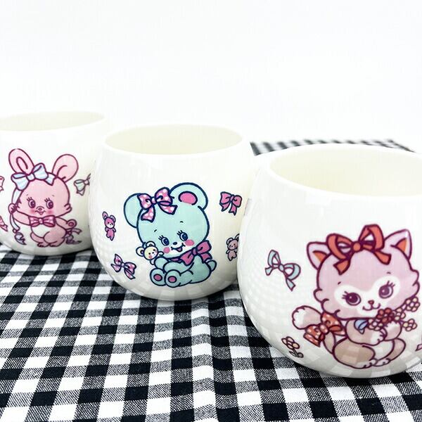 スイマーのまんまるマグカップです。コロンっとしたフォルムがかわいい♪リボンとかわいいキャラクター達がデザインされています。