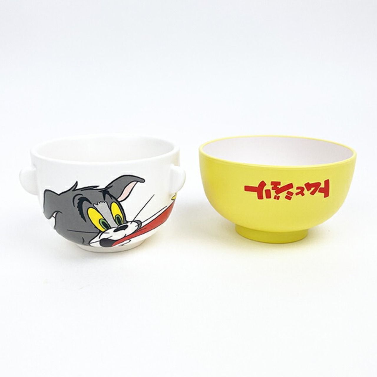 トムとジェリーの汁椀茶碗セットミニです。フェイス柄がキュート☆小さめなのでお子様用にもおすすめ◎電子レンジ使用可◎【サイズ】茶碗:6cm×9cm×9cm、汁椀:5.7cm×10cm×10cm