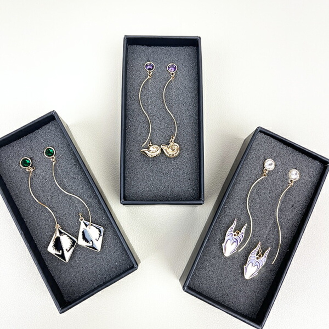 ディズニーヴィランズたちのシックでミステリアスなシリーズ◎動きのあるウェーブと「Villains」のイメージに合わせたメタルが重なりあって揺れるピアス。曲線が女性らしさを感じられますよ♪専用パッケージ箱入り◎
