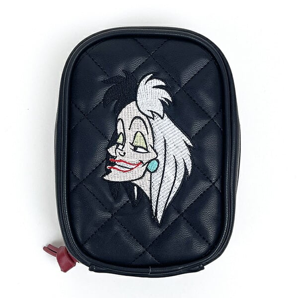 ディズニーヴィランズたちのシックでミステリアスなシリーズ◎インパクトのある顔の刺繍ポーチ。キルティング加工を施したふかっとした質感。内側には両面にゴム入りポケットがあり、コスメポーチとしても◎大きく口が開くので使い勝手も◎【内ポケット:オープン×3】