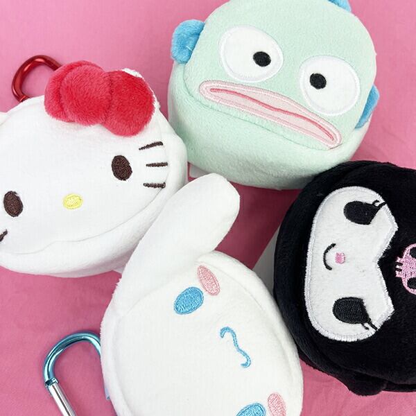サンリオキャラクターのフェイスデザインがかわいいミニポーチ。カラビナ付きなので、バッグに付けて一緒におでかけしてくださいね!