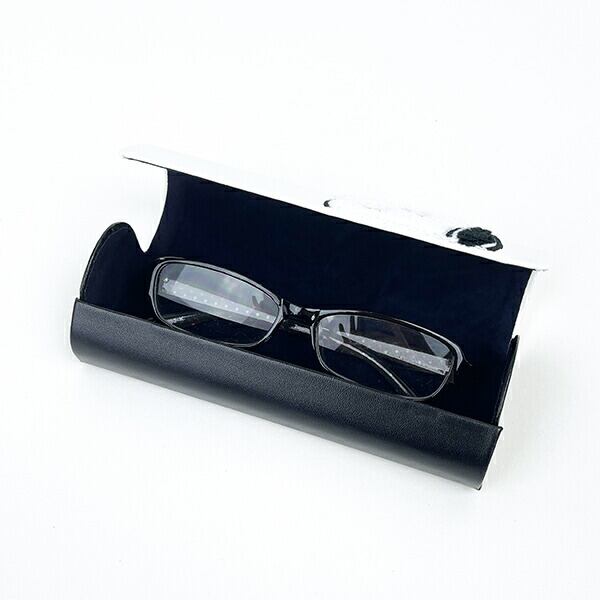 PU生地に、もこもこサガラ刺繍のアクセントがおしゃれ。シンプルで男女問わずお使いいただけるメガネケースです♪