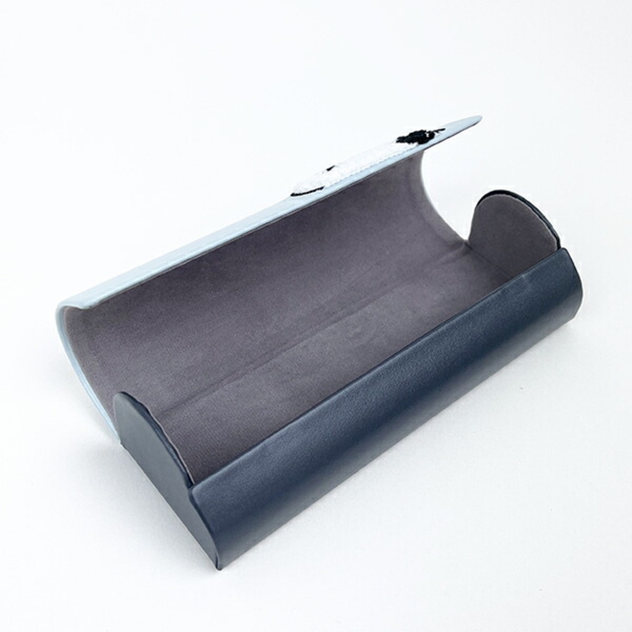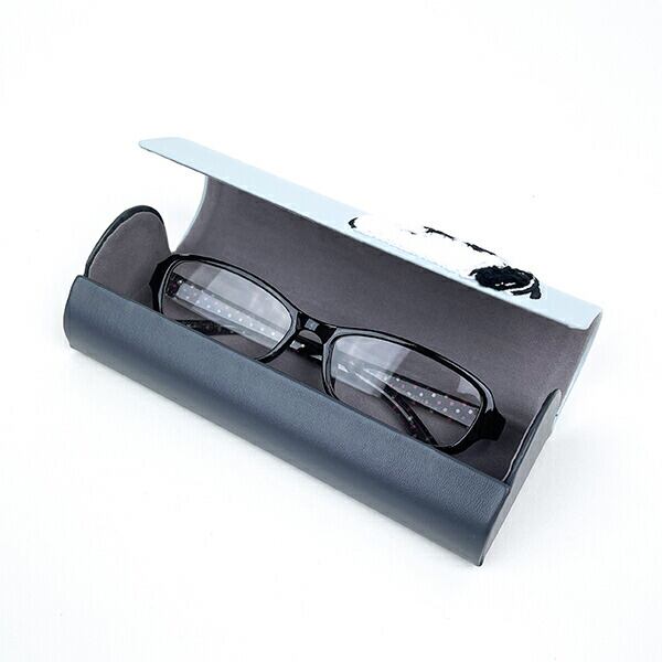 PU生地に、もこもこサガラ刺繍のアクセントがおしゃれ。シンプルで男女問わずお使いいただけるメガネケースです♪