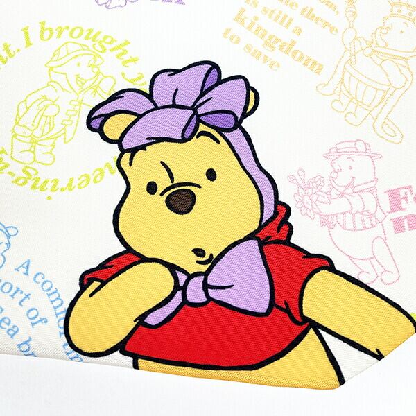 一年中大活躍する保冷保温ミニトートです。かわいいコスチュームを着たプーさんがカラフルに描かれています♪