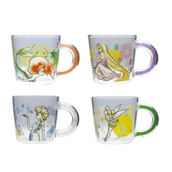 ディズニーのプリンセスのデザインと、中空のハンドル部分にイメージカラーのビーズが入ったオシャレ感漂うガラスマグカップです♪食器棚でもひときわ存在感を放つプリンセスのような存在に!?【容量:390ml】【φ:8.9cm】
