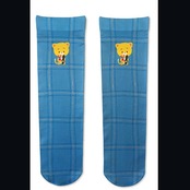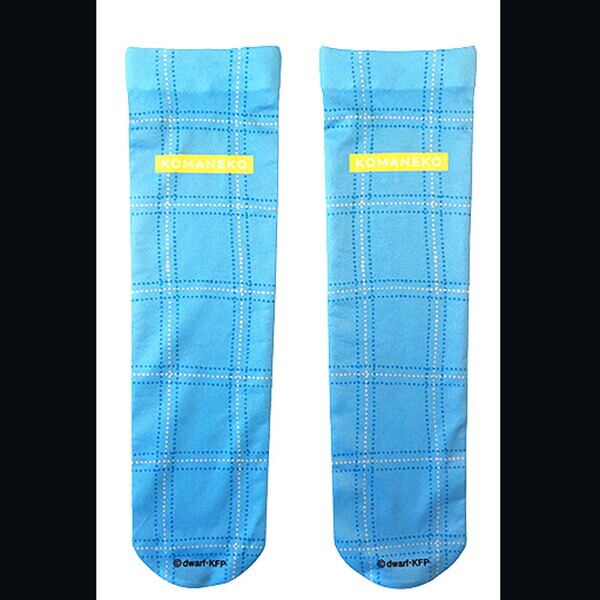 こまねこ プリントクルーソックス 水色チェック 靴下 くつした アパレル ブルー