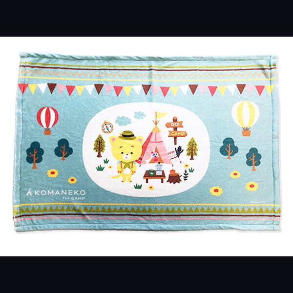 こま撮りをするねこが主役の人形アニメーション「こまねこ」のこまちゃんがキャンプを楽しむデザインがかわいいブランケット。おうちやオフィスではもちろん、ちょっと寒い日のアウトドアにも大活躍なアイテムです♪