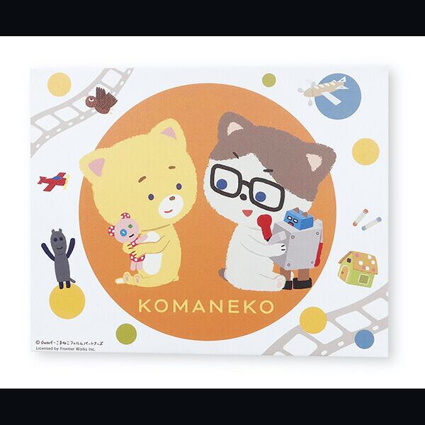 こま撮りをするねこが主役の人形アニメーション「こまねこ」の世界を楽しめるキャンパスアート。こまちゃんとラジボーが楽しく遊んでいる姿にほっこり♪