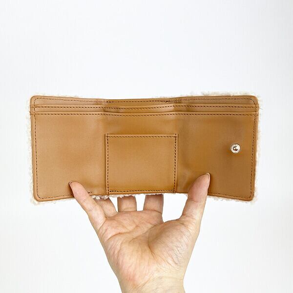 トムとジェリーの三つ折りミニウォレットです。もこもこのボアを使用しており触りが良く、小物で季節感を取り入れたい時にぴったり♪フェイクレザーにプリントされたデザインもキュート☆コンパクトながらもカード4枚収納可能!お札ポケットが2つあるのもおすすめポイントです♪