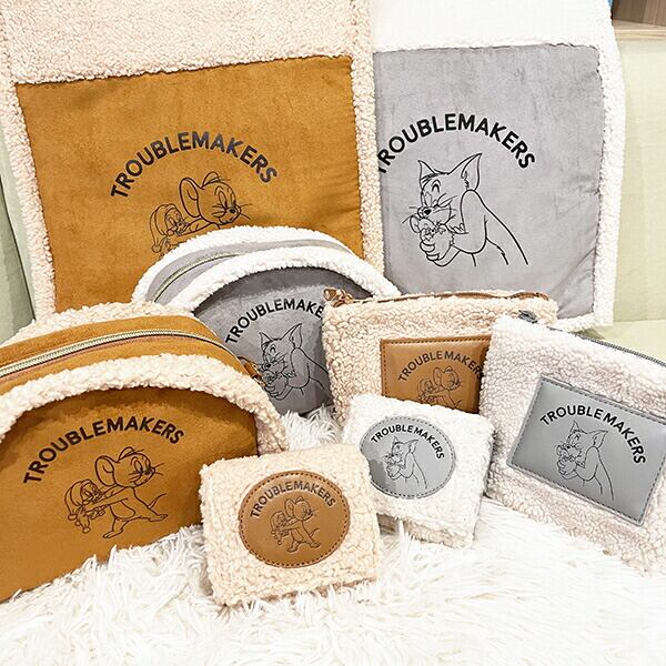 トムとジェリーの可愛いミニポーチです。もこもこのボアを使用しており、肌触りが良く、小物で季節感を取り入れたい時にぴったり♪中央の仲良しアートがキュート☆秋冬らしい色合いがおすすめです!