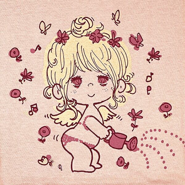 水森亜土 シルクスクリーンプリント BIGTシャツ(テンシ) (ダスティピンク) アパレル 亜土ちゃん