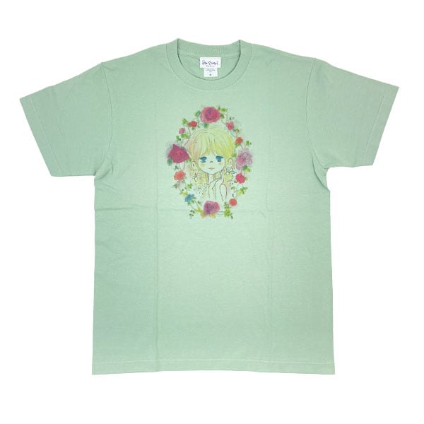 水森亜土 インクジェットプリント Tシャツ(バラ) (ライトセージ) アパレル 亜土ちゃん